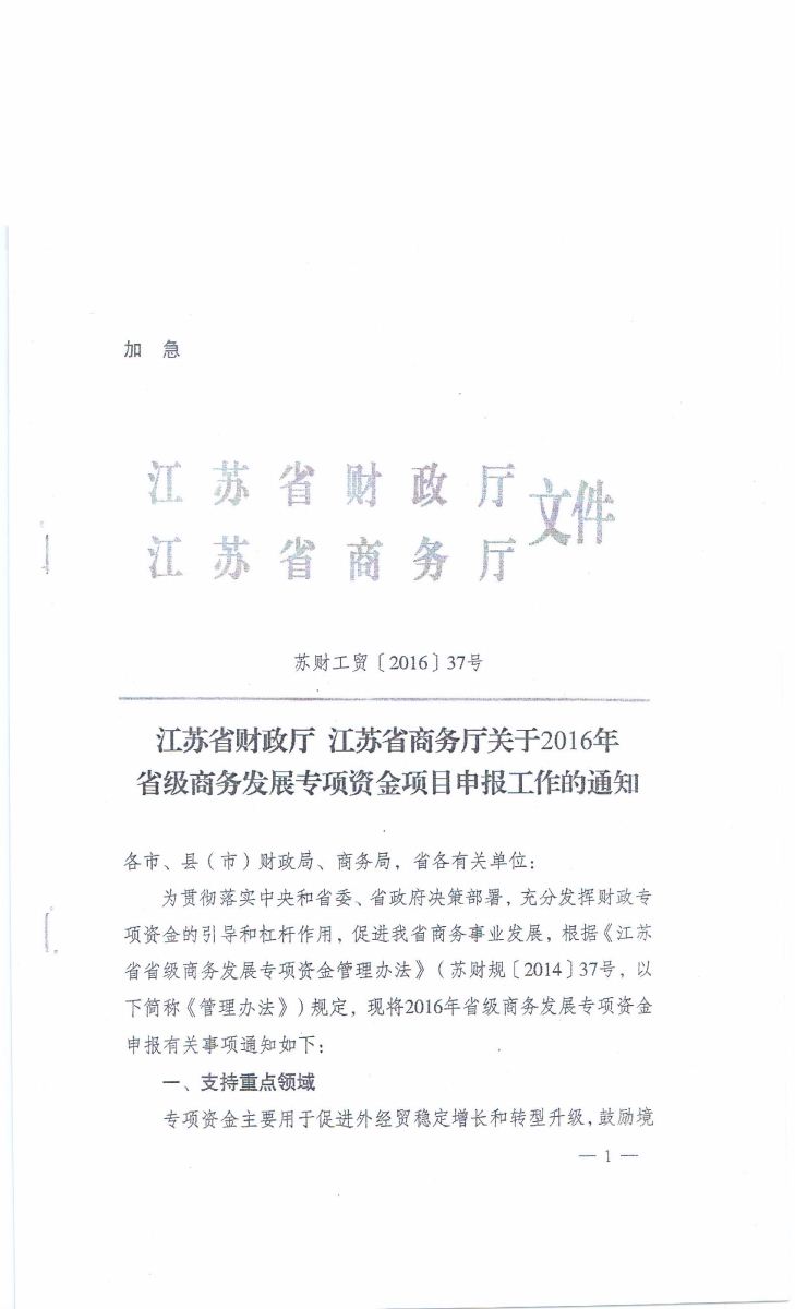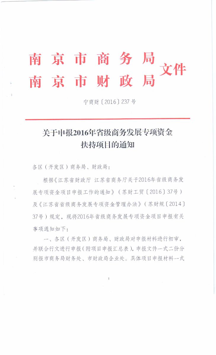 關(guān)于申報(bào)2016年省商務(wù)發(fā)展專(zhuān)項(xiàng)資金扶持項(xiàng)目的通知